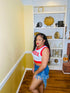 Introducing the Limited Edition White Cropped Tank Top with Red "Baddie" Print, designed to turn heads with a pop of color and bold attitude. The striking red “Baddie” print on a clean white background gives this top a sharp, high-impact look that exudes confidence and style.