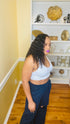 This racerback tank offers a modern, sporty twist with extra freedom of movement. The ribbed texture and deep V-neck design create a sleek and figure-enhancing shape. The White Ribbed Deep V-Neck Racerback Tank Top simplifies your wardrobe while boosting your confidence. Whether you wear it alone for a laid-back, casual day or use it as the base for a layered outfit, this top offers comfort without compromising on style. It’s the versatile, flattering piece you need to make getting dressed a breeze